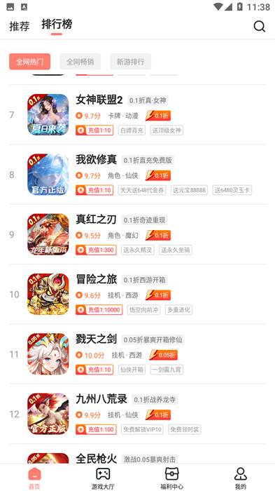 2、用戶可以在排行榜中查看到各種熱門的游戲和全網(wǎng)暢銷、新游排行榜的游戲,用戶可以查看;