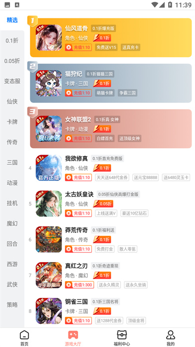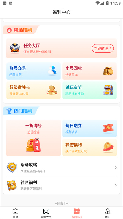 4、在福利中心中可以領(lǐng)取各種類型的小游戲,出售或購買賬號,做任務(wù)領(lǐng)取福利,領(lǐng)取各種福利。