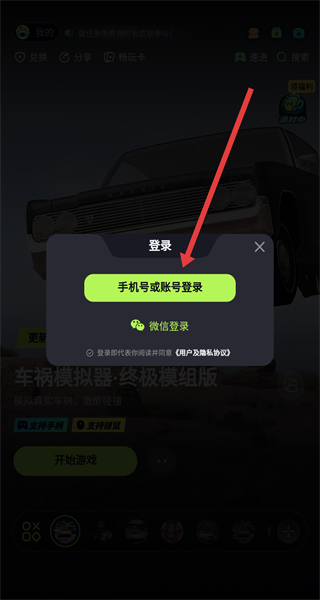 2、登錄窗口中選擇“手機號或賬號登錄”,進入手機號登錄界面。