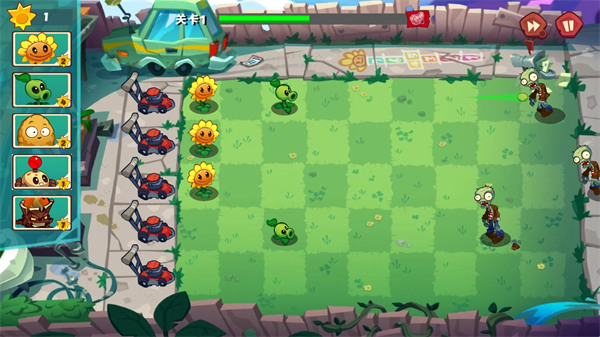 3、在進(jìn)入到游戲中之后就可以正常的放置植物,對抗所有的僵尸;