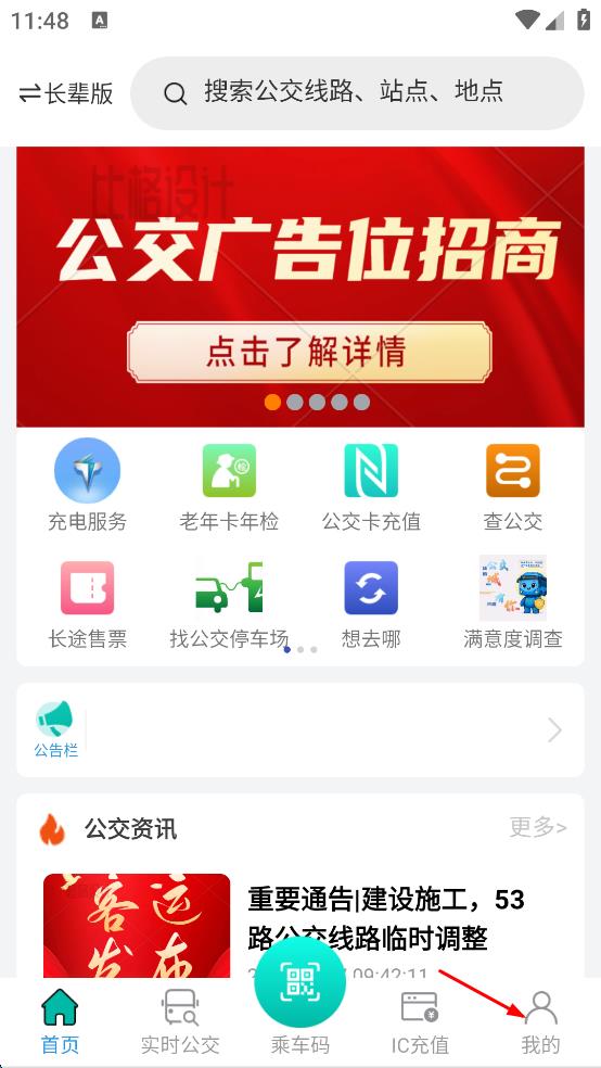 1、打開公交出行軟件,點(diǎn)擊頁面底部最右側(cè)“我的”選項(xiàng),進(jìn)入個(gè)人頁面。