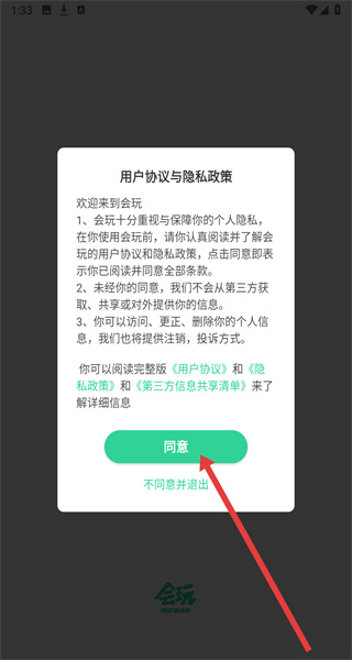 1、在打開(kāi)會(huì)玩App后,可以點(diǎn)擊彈窗中點(diǎn)擊同意按鈕,進(jìn)入使用。