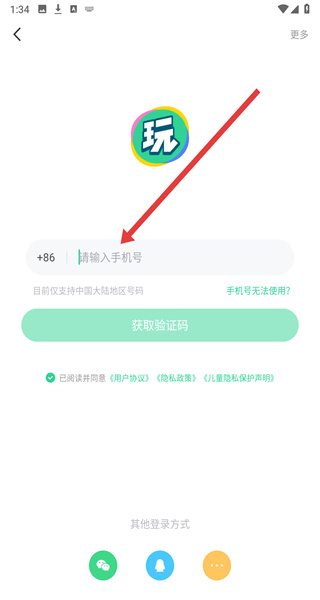 3、在跳轉(zhuǎn)到手機(jī)號(hào)登錄頁(yè)面中,可以點(diǎn)擊輸入框填寫手機(jī)號(hào),以便獲取驗(yàn)證碼進(jìn)行登錄。