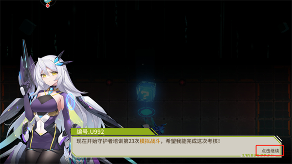 4、順利的進入到戰(zhàn)斗場景內(nèi)之后,將會看見一個戰(zhàn)斗角色,這個戰(zhàn)斗角色會給你提供一些關于戰(zhàn)斗的背景故事,可以通過點擊右下角的按鈕來繼續(xù)對話;