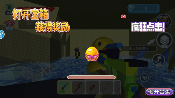 2、隨后進(jìn)入到這里便可以看到一個免費(fèi)領(lǐng)取獎勵的界面,瘋狂點(diǎn)擊右下角的【砸開金蛋】收獲到豐厚的獎勵;