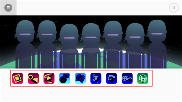 4、下方放置著不同圖標(biāo)的音符,每一個(gè)音符所帶來(lái)的效果都是不同的,將其放置在不同角色身上創(chuàng)立自己的演奏樂隊(duì)。