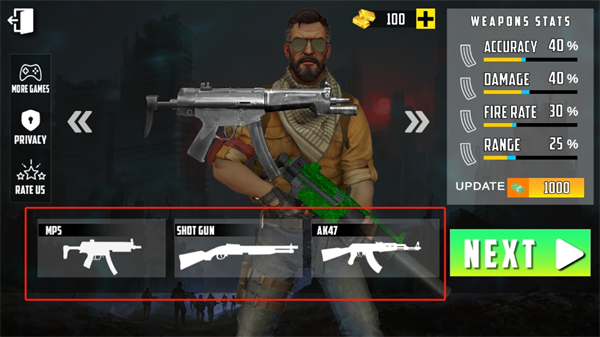 3、進入后可以看到有多個武器可以選擇,但是都需要金幣進入游戲作戰(zhàn)獲得金幣吧;
