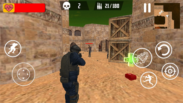 4、進入游戲后我們可以通過搖桿進行移動、跳躍、沖刺、瞄準,遇到敵人會自動攻擊注意躲藏哦。
