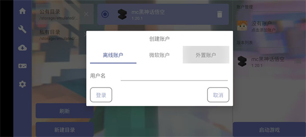 4、隨后我們創(chuàng)建一個賬戶,用來存檔,只需要在【離線賬戶】中輸入一個名字,點擊【登錄】即可;