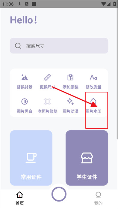 1、首先,你可以將軟件從本站下載,并點擊進入到平臺中,找到首頁的【水印】按鈕,點擊進入;