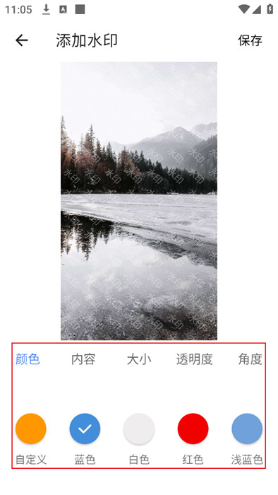 3、緊接著,可以看到最下方有一些水印的顏色和大小的調(diào)整,都能按照需求來處理;