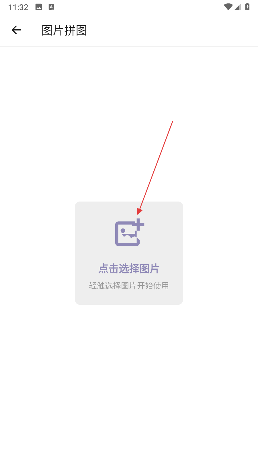 2、進入圖片拼圖界面后,點擊點擊選擇圖片的區(qū)域,從設(shè)備的相冊里選取需要用來拼圖的圖片。