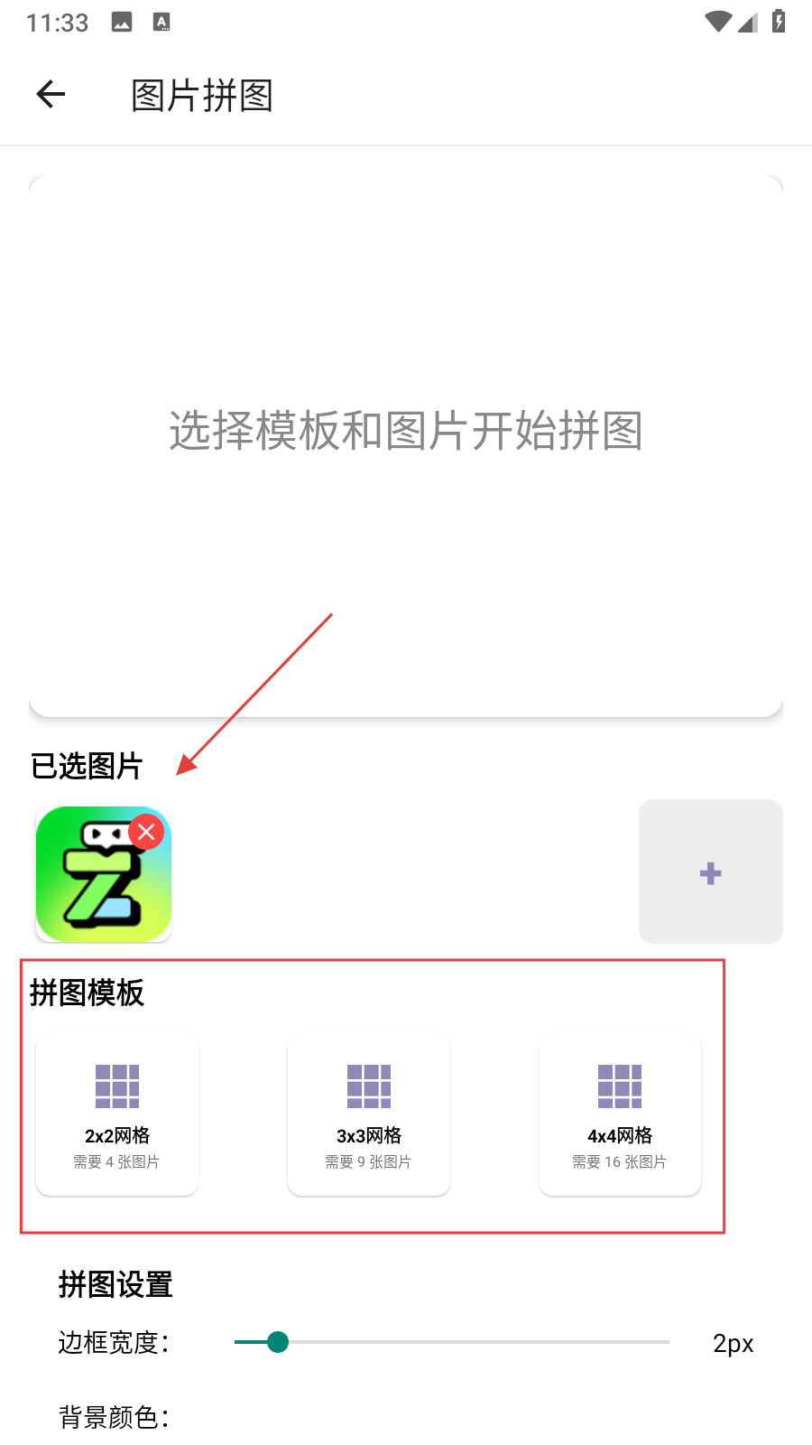 3、圖片選擇完成后,在拼圖模板區(qū)域挑選合適的拼圖模板。
