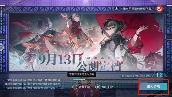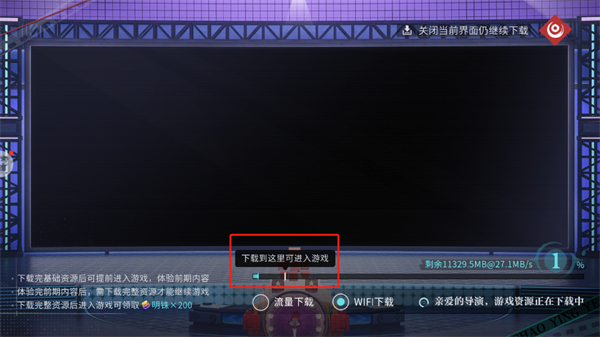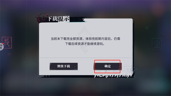 4、此時(shí)進(jìn)入游戲?qū)?huì)出現(xiàn)一個(gè)提示頁面,玩家可以選擇繼續(xù)下載,也可以選擇進(jìn)入到游戲之中。