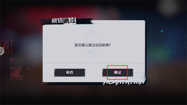 4、此時將會出現(xiàn)一個彈窗提示,這個彈窗提示將會再次確定玩家是否是跳過劇情,以防止玩家誤觸,點擊【跳過】按鈕即可。
