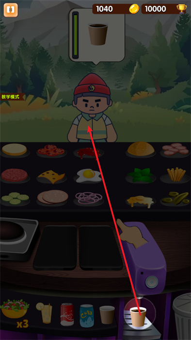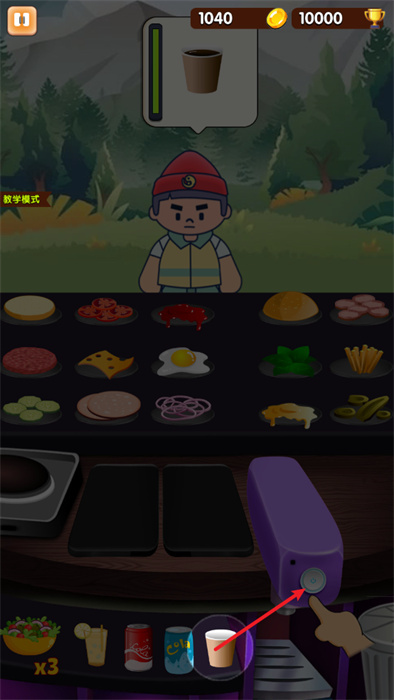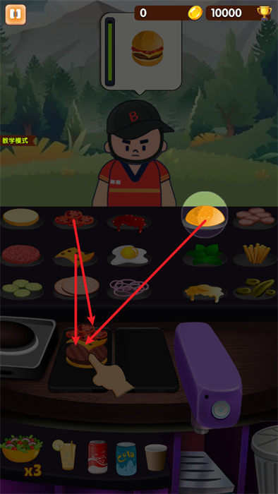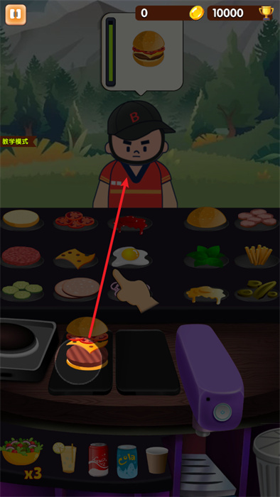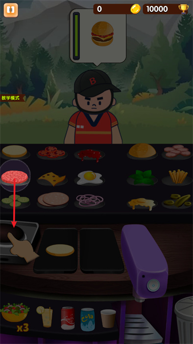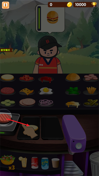 可以在教學模式之中進行漢堡制作的學習,以確保自己能夠快速的學會做漢堡;