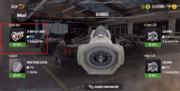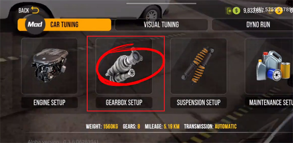 3、此時(shí),玩家將需要點(diǎn)擊屏幕之中紅色框框內(nèi)的零部件,以進(jìn)行變速器的調(diào)整;