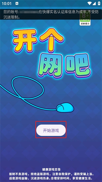1、來到這個游戲的首頁,點擊【開始游戲】開啟自己在這里的炫藍色網(wǎng)吧背景,感受活躍的游戲氣氛,體驗各種網(wǎng)吧經營過程;