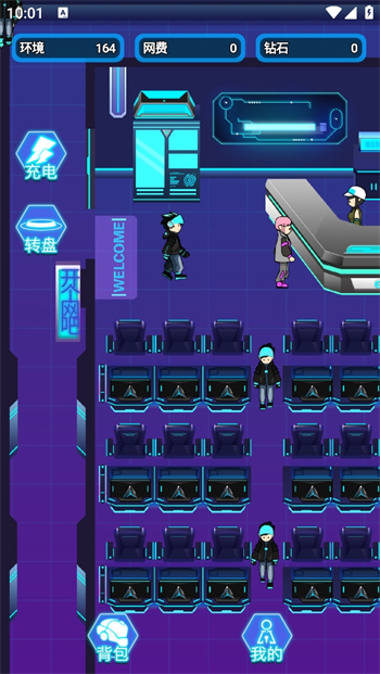 2、隨后就直接進入到網(wǎng)吧之中了,海量的顧客前來這個網(wǎng)吧里面,他們自動上網(wǎng)中為你帶來豐厚的收益,簡單的玩法過程中體驗真實的經營模擬過程;