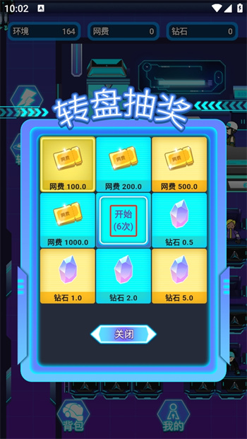 3、每天在這都可以免費體驗轉盤獎勵,點擊中間的【開始】利用運氣抽取不同的獎勵,收獲更多豐厚的獎勵;