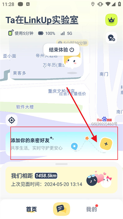 3、接著,進入到首頁之后可點擊中間的添加按鈕,可添加自己的好友,并進行定位的實時同步;
