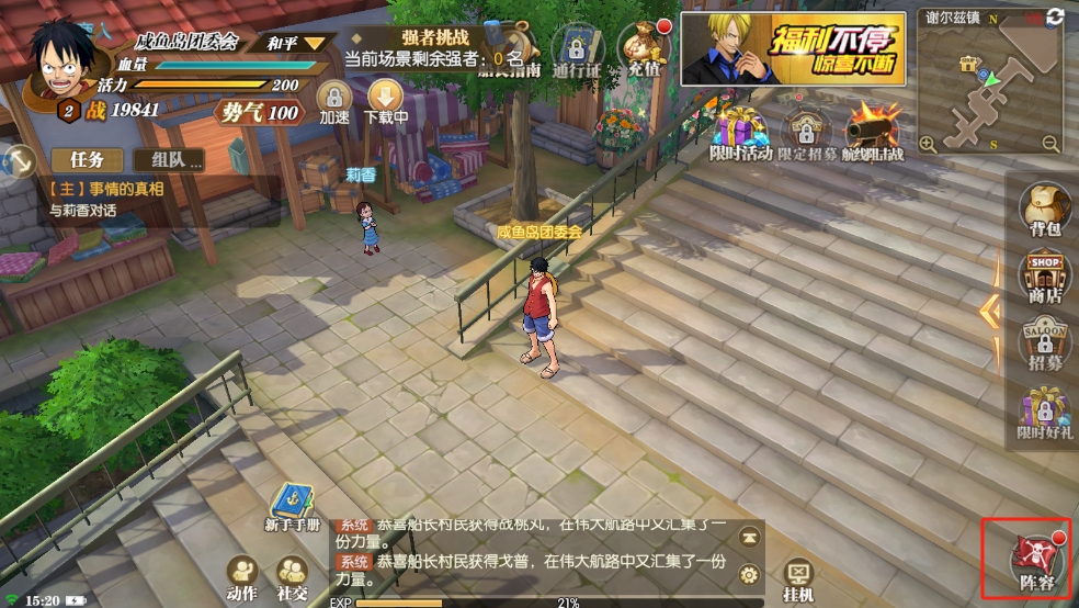 1、進(jìn)入游戲后可以看到在右下角的陣容處進(jìn)行角色查看,并了解自己當(dāng)前的陣容信息;