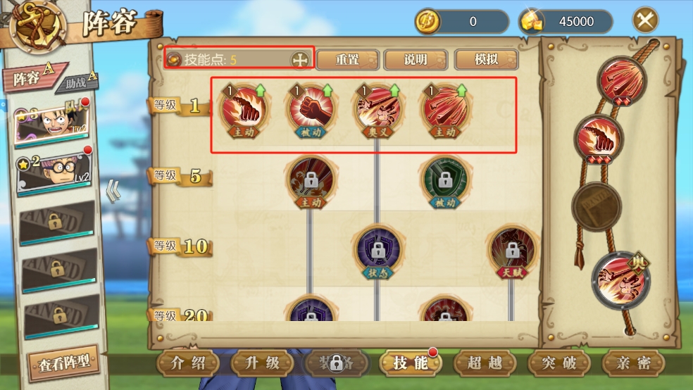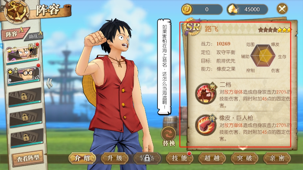2、接著進(jìn)入陣容里可以看到一些自己角色的信息,并了解技能上攻擊上的一些介紹等等;