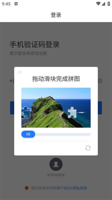 3、輸入完自己的手機號之后拖動滑塊完成拼圖;