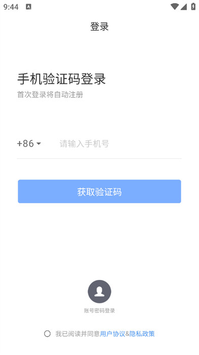 1、進入到軟件之后輸入自己個人的手機號,然后點擊獲取驗證碼;