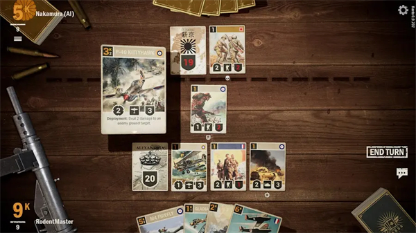 KARDS是一款以二戰(zhàn)為題材的收集類卡牌游戲,玩家需靈活搭配單位卡、戰(zhàn)術(shù)卡與支援卡,既要部署地面部隊鞏固防線、推進(jìn)戰(zhàn)線,也要派遣空軍爭奪制空權(quán)壓制敵方,必要時還可發(fā)動戰(zhàn)略轟炸等戰(zhàn)術(shù)卡打亂對手節(jié)奏,勝負(fù)不僅取決于卡組構(gòu)建與卡牌收集深度,更考驗實時戰(zhàn)局判斷,針對敵方空軍短板集中部署防空卡牌,每一步?jīng)Q策都關(guān)乎戰(zhàn)場主動權(quán),帶來兼具歷史厚重感與策略深度的對戰(zhàn)體驗。