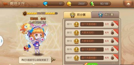 城堡,點擊進入后就來了到競技場主界面,我們可以看到在競技場內(nèi)有兩種模式的比賽——積分賽和練習(xí)賽