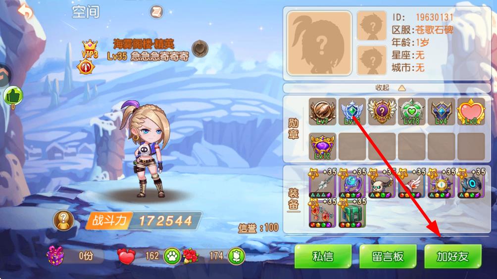 3、搜索出目標玩家后直接進入其空間界面,在界面右下方找到加好友按鈕,點擊該按鈕等待對方同意后,即可成功添加好友。