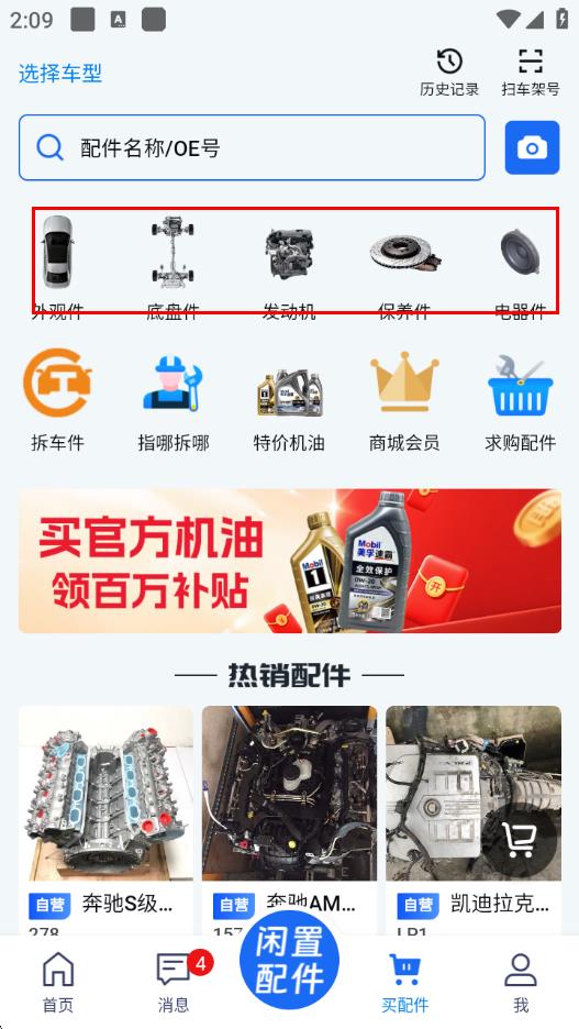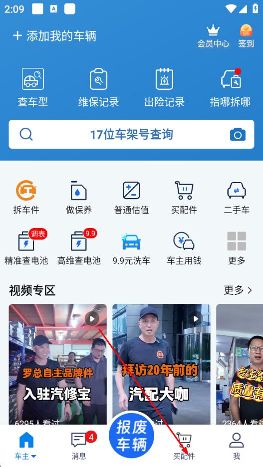 1、打開(kāi)汽修寶App,點(diǎn)擊底部導(dǎo)航欄中的買配件選項(xiàng)。