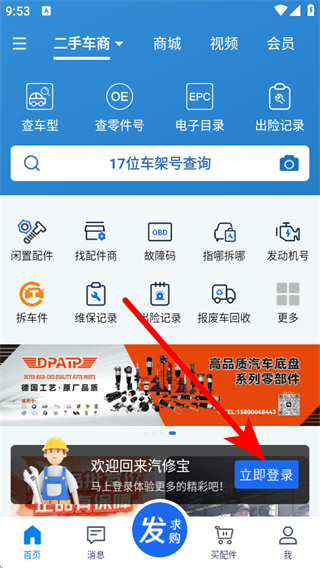 1、在汽修寶的首頁(yè),點(diǎn)擊立即登錄,進(jìn)入驗(yàn)證碼登錄的頁(yè)面。