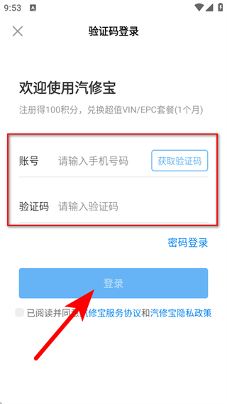 2、在驗(yàn)證碼登錄頁(yè)面,輸入手機(jī)號(hào)碼、獲取并填寫驗(yàn)證碼后,點(diǎn)擊登錄。