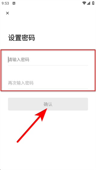 3、進(jìn)入設(shè)置密碼的頁(yè)面,輸入密碼并再次確認(rèn)后,點(diǎn)擊確認(rèn)。