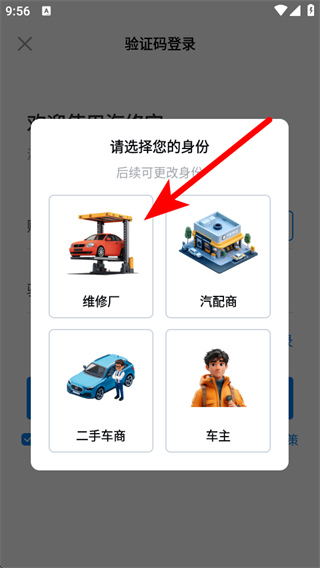 4、選擇身份維修廠、汽配商、二手車商、車主,完成賬號(hào)注冊(cè)操作。