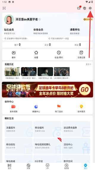 1、打開咪咕視頻APP,在首頁內(nèi)點擊右下角我的圖標(biāo)。