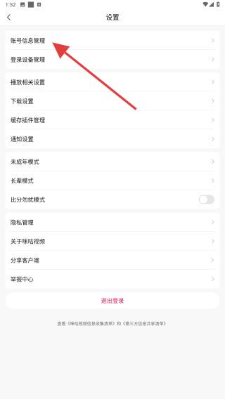 3、在設(shè)置的頁面內(nèi),找到并點擊賬號信息管理。