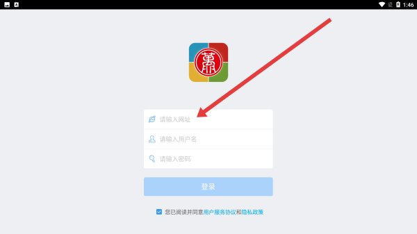 2、登錄頁面的網(wǎng)址輸入框中,填寫學校發(fā)送的網(wǎng)址,完成登錄前置信息錄入。