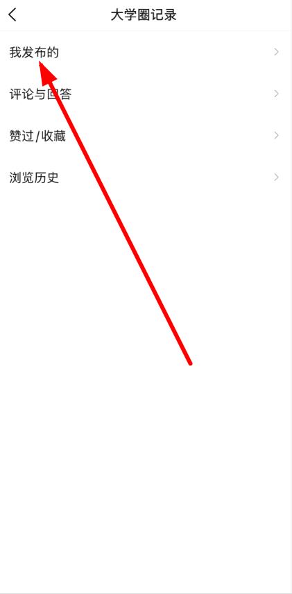 3、在大學(xué)圈記錄頁面,點擊我發(fā)布的選項。