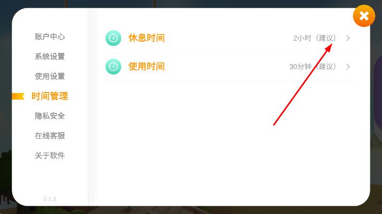 3、在設(shè)置里找到時(shí)間管理頁(yè)面,點(diǎn)擊休息時(shí)間選項(xiàng)。