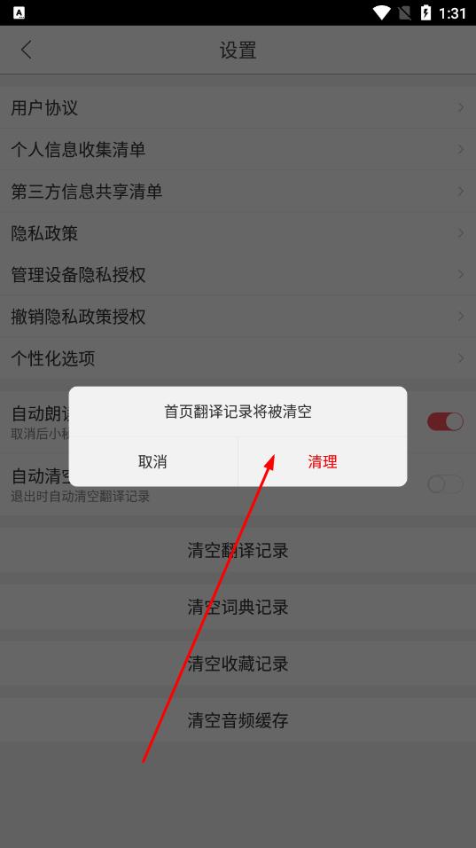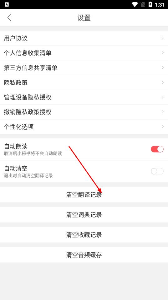 3、在設(shè)置頁(yè)面中,找到清空翻譯記錄選項(xiàng)并點(diǎn)擊。