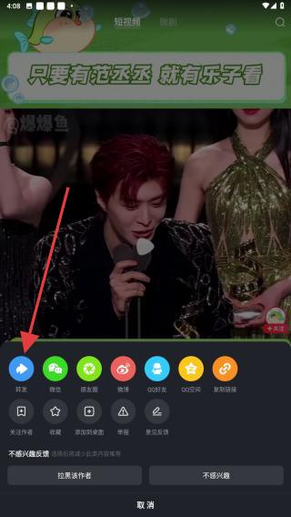 3、在視頻播放的界面,找到并點擊分享的按鈕即可跳轉(zhuǎn)該頁面。