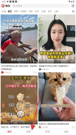 1、啟動愛奇藝隨刻APP進(jìn)入到首頁內(nèi),點擊下方導(dǎo)航欄免費的圖標(biāo)。
