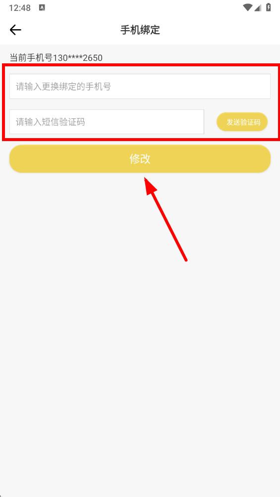 5、在頁面輸入要更換綁定的手機(jī)號(hào)和短信驗(yàn)證碼后,點(diǎn)擊修改,即可完成手機(jī)號(hào)修改。