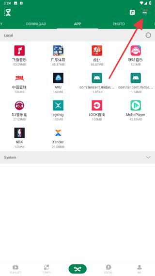 1、打開(kāi)XenderAPP,進(jìn)入到主頁(yè)內(nèi),點(diǎn)擊右上角三個(gè)橫線的圖標(biāo)。