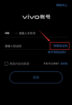 2、輸入手機(jī)號碼后,獲取驗證碼。