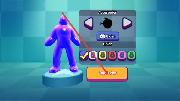 1、進入游戲界面后,點擊下方橙色的【Tap to start】按鈕(第一張圖箭頭指向),開啟游戲冒險。