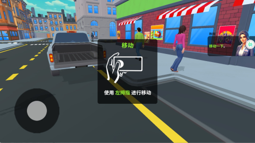 1、通過手機的虛擬握柄操控,左拇指進行移動可以控制人物的行為動作。